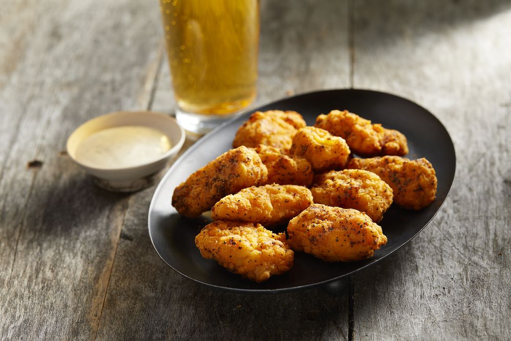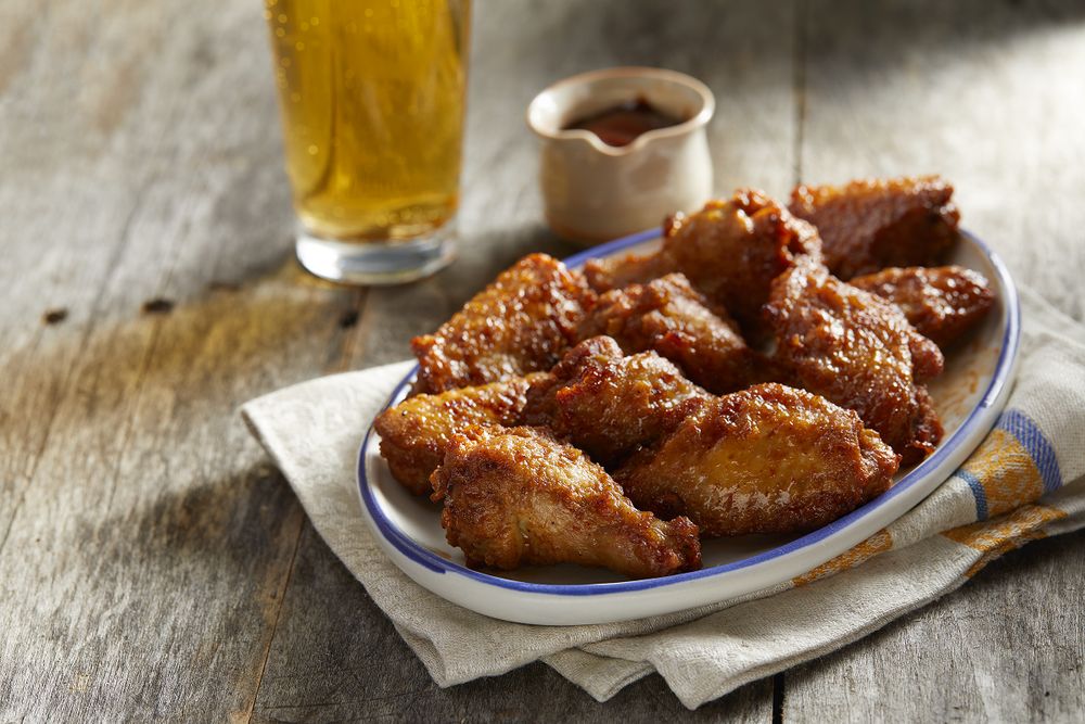 Traditional bone-in wings topped with kettle cooked original BBQ sauce. Each 5pc wings comes with a side of ranch
